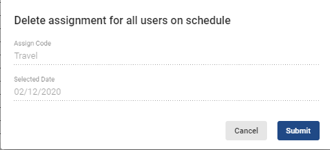 Clicking on Delete In Column will prompt a Delete assignment for all users on schedule pop-up box where the user can delete an assignment for all users listed in the schedule.