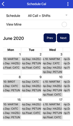 Tapping on any name in the calendar will bring up their Staff Info page with their contact details.